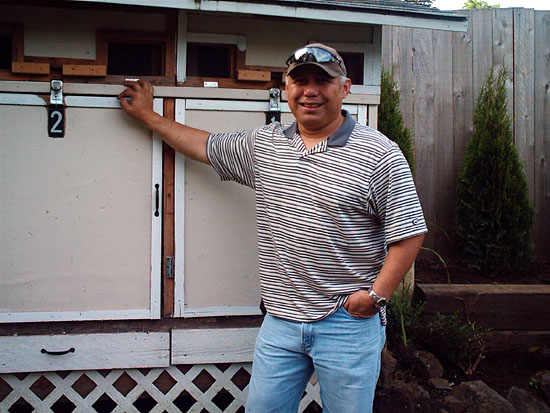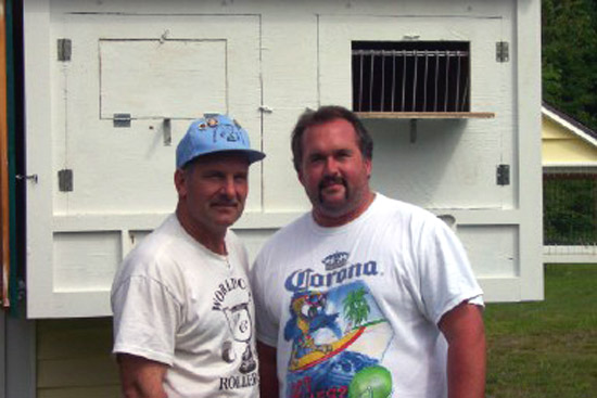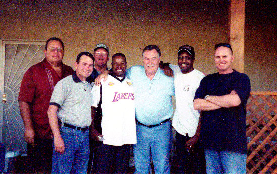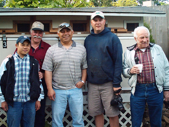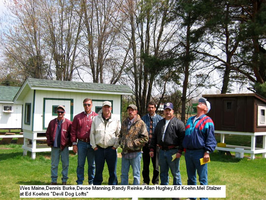 | John Destouet, Ron Duncan, Ron Judd, DeWayne Holmes, J.V. Broek, Marshall Duncan, Brian McCormick | Southern California Fanciers at Brian McCormicks Loft | Ron Judd and his portable flying loft | Fanciers attending Fly at Bobby Bradley's Home |
